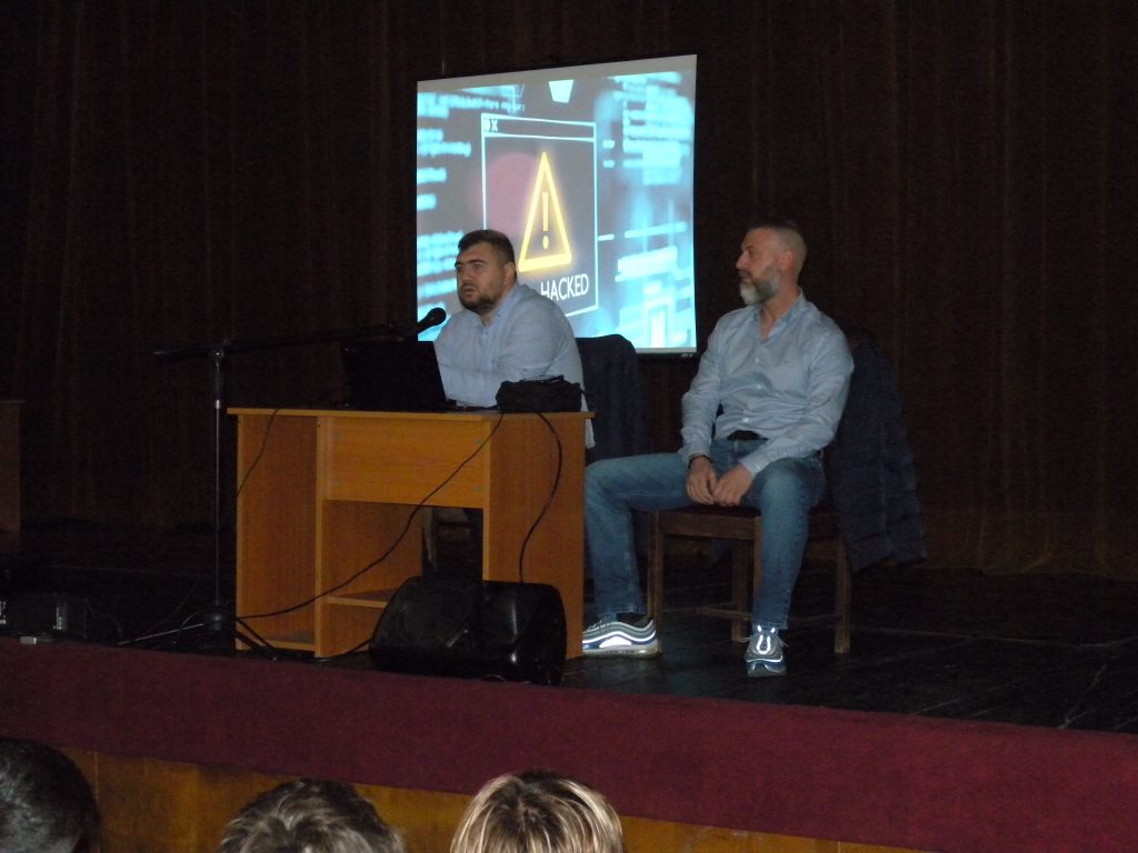 „Не качвай днес това, което утре ще искаш да свалиш!“ – това „златно правило“ сподели с присъстващите инспектор Михаил Драгоданов от специализираната дирекция на ГДБОП. Увлекателно и компетентно, с реални примери от живота и случаи, с които се е сблъсквал в практиката си, инспектор Драгоданов представи пред тийнейджърите презентация на тема „Кой е срещу мен в мрежата“. Между 100 и 150 сигнала получават на ден служителите в ГДБОП за измами, изнудване и кибертормоз. Общото при всички случаи е, че изискват активно действие от страна на жертвата, посочи инспекторът. Той обясни новия термин „сексоржън“ /изнудване с неприлични снимки/, разликата между „фишинг“ и „насочен фишинг“ и отбеляза колко важно е да не предоставяме лични данни в интернет пространството. Ако все пак станем жертви на измама или кибертормоз, би трябвало да прекратим комуникацията и да запазим съобщенията в скрийншотове, за да се използват като годни доказателства при разследване от ГДБОП. Присъстващите гимназисти научиха и друг нов термин – НЕТИКЕТ, който е сборна дума от интернет и етикет.