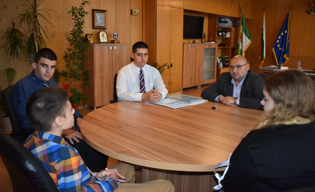 Кметът на Община Разград Добрин Добрев се срещна днес с четирима ученици от НПТГ“Шандор Петьофи“ и им връчи награда за участието им в Националния младежки конкурс „Аз за моята община: Моят глас за европейска промяна“.