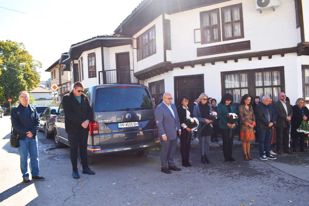 След едноминутно мълчание в памет на Георги Попов първи поднесоха венец пред паметната плоча Кметът Добрин Добрев и Председателят на Общински съвет-Разград Галина Георгиева. Цветя поднесоха заместник-кметовете Полина Иванова и Хабибе Расим, секретарят на Община Разград Нели Добрева. Венец бе поднесен и от името на народния представител Джипо Джипов, както и от групите общински съветници от БСП за България и от ПП-ДБ, от директора на Регионален исторически музей Таня Тодорова, както и от общински служители и признателни граждани. Почит пред първия разградски кмет отдаде и представител на неговата фамилия. Богомилка Атанасова е съпруга на д-р Благовест Атанасов, който е праправнук на Георги Попов. Г-жа Атанасова разговаря с Кмета Добрин Добрев и сподели с него спомени за семейството на първия кмет на Разград.