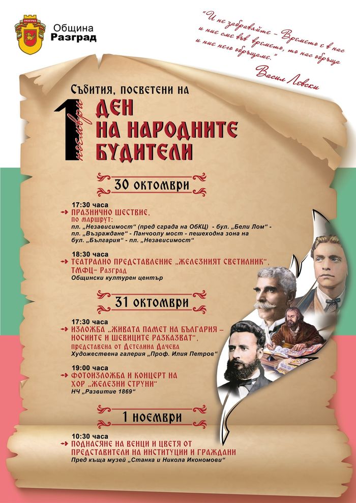 Програма за 1 ноември – Ден на народните будители – Разград